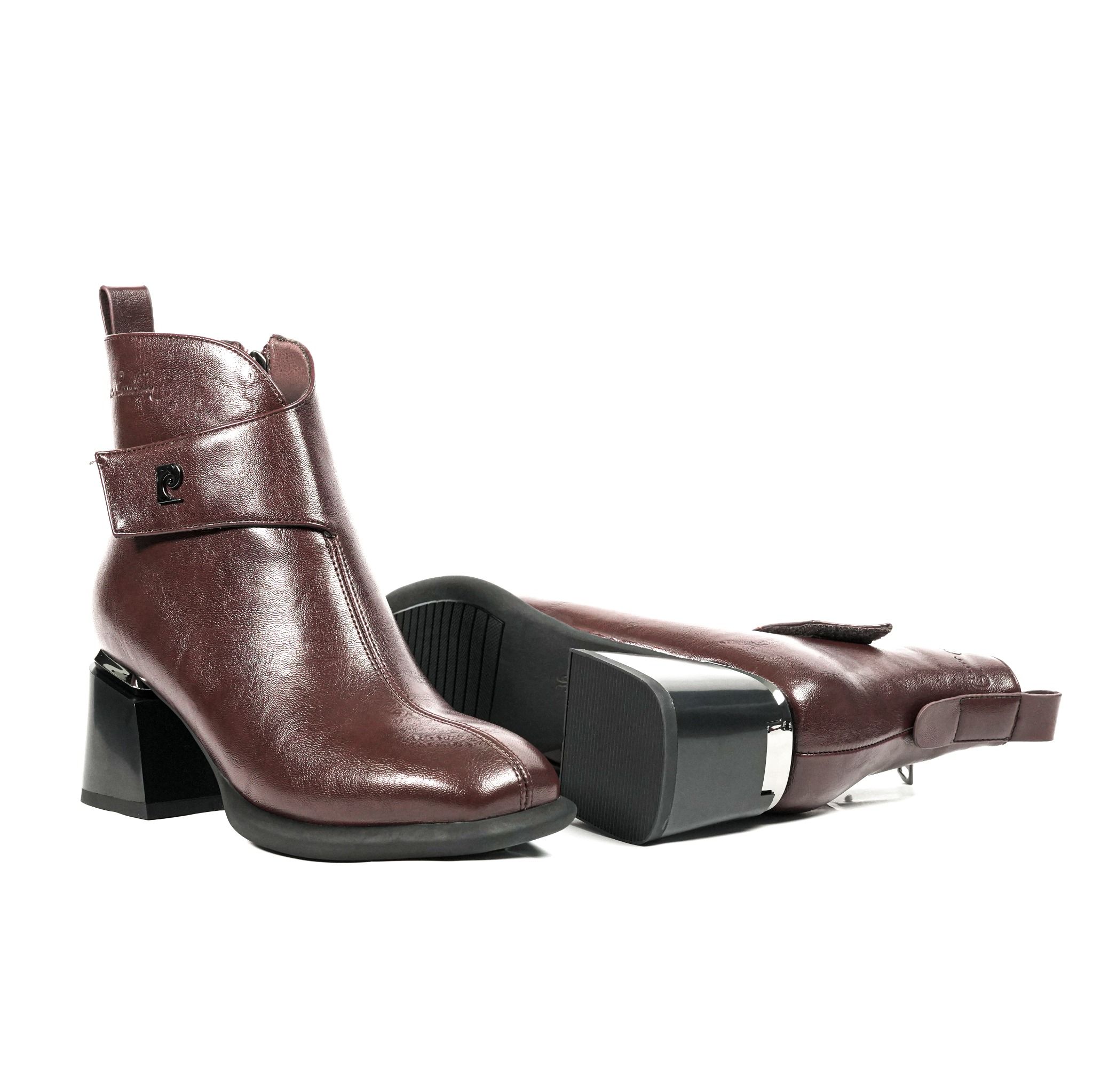Mẫu giày bốt cổ thấp (Ankle Boots) Pierre Cardin - 300 là sự giao thoa hoàn hảo giữa nét thanh lịch cổ điển và tinh thần thời trang đương đại. Với điểm nhấn là bộ gót hình khối lạ mắt phối màu kim loại, sản phẩm không chỉ mang lại sự tự tin trong từng bước đi mà còn khẳng định gu thẩm mỹ độc đáo, không hòa lẫn của quý cô hiện đại.