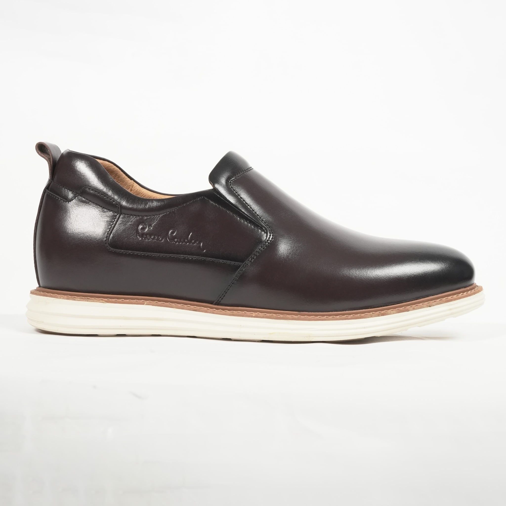 Sản phẩm mã 376 nổi bật với kiểu dáng Slip-on gọn gàng, loại bỏ hoàn toàn hệ thống dây buộc cầu kỳ. Điểm nhấn nằm ở những đường chỉ khâu tay tỉ mỉ dọc thân giày và logo Pierre Cardin dập chìm tinh tế bên hông, tạo nên một tổng thể đẳng cấp nhưng không phô trương.